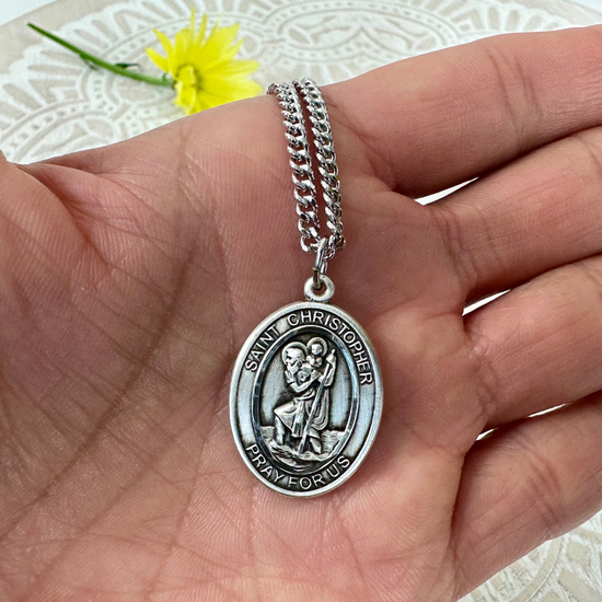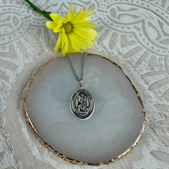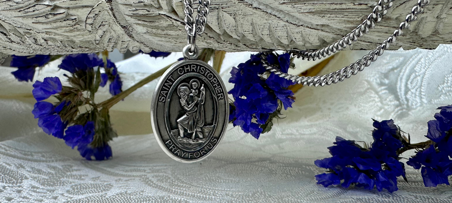 St. Christopher medals and pendants are often worn for protection in traveling. Wearing a necklace has the devotional effect of helping you keep company with St. Christopher throughout your journey.