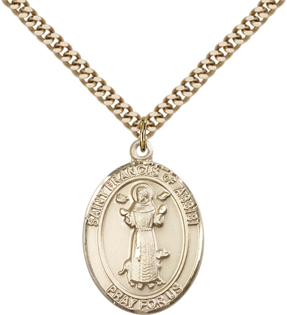 14kt Gold Filled St. Francis of Assisi Pendant with 24 inch Gold Plate Heavy Curb Chain