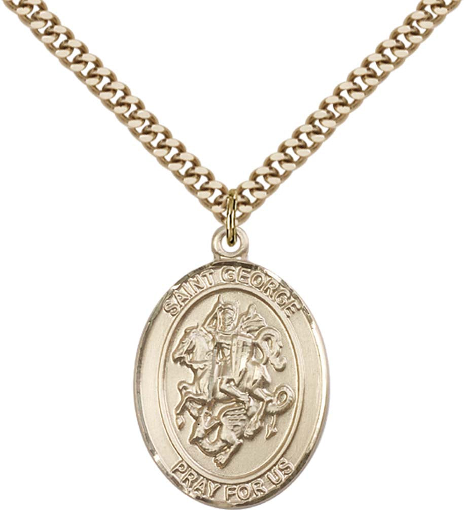 14kt Gold Filled St. George Pendant with 24 inch Gold Plate Heavy Curb Chain