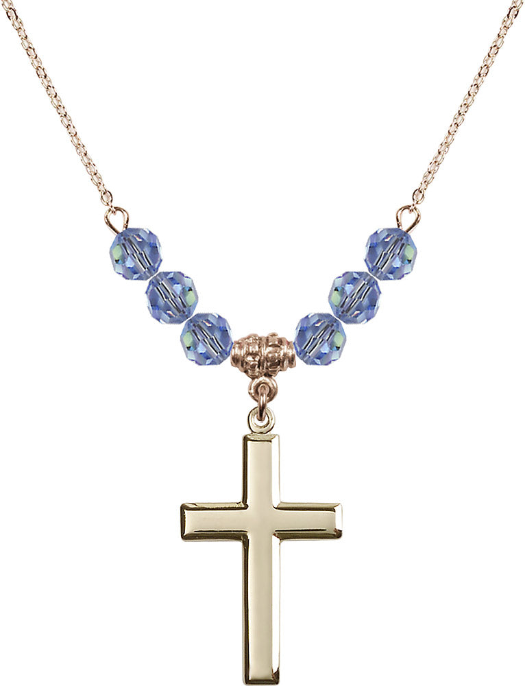 14kt Gold Filled Cross Birthstone Necklace with Light Sapphire Beads - 2190