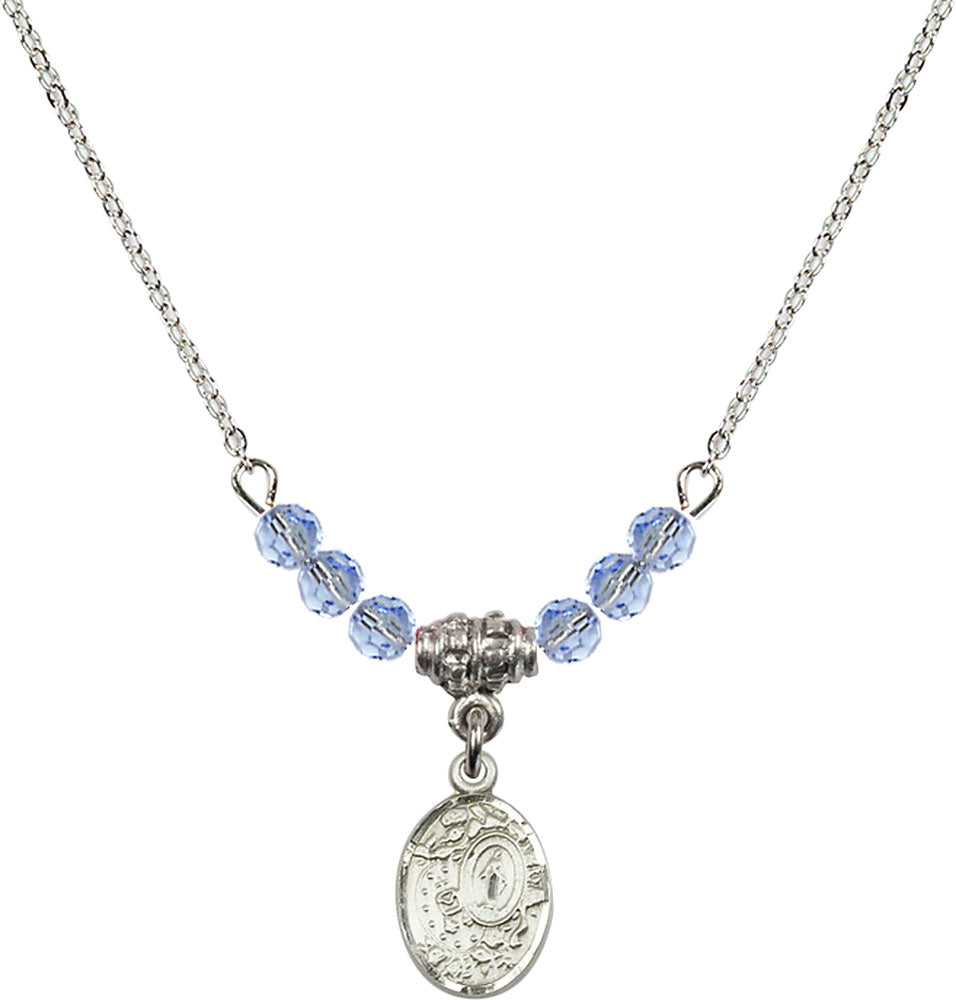 Sterling Silver Miraculous Birthstone Necklace with Light Sapphire Beads - 9682